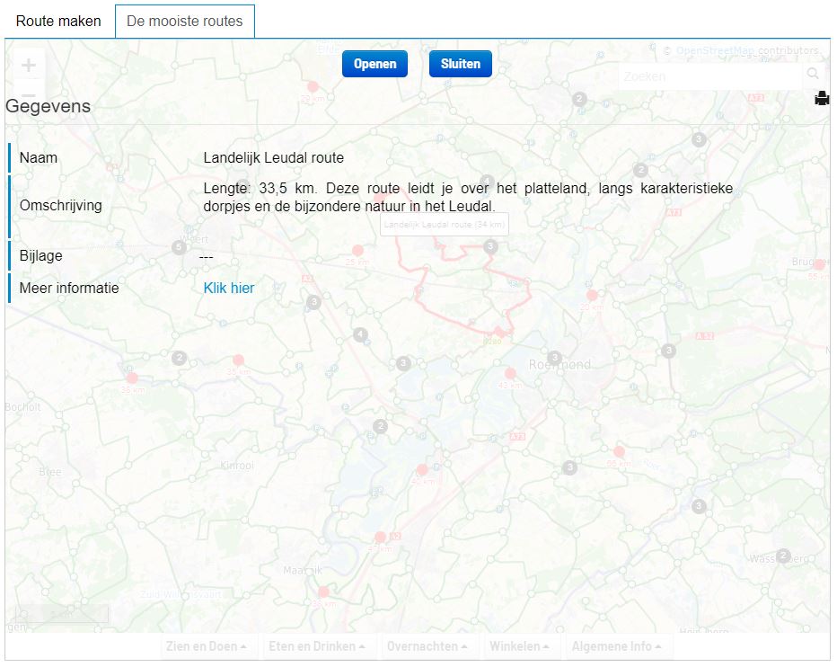 Als je een route hebt geselecteerd, klik je op openen voor een totaaloverzicht van de route. Nu kun je de route downloaden of uitprinten. Ook kun je ervoor kiezen om de route op de mail te ontvangen, zodat je deze later kunt gaan fietsen (let er op dat deze in jouw spamfilter terecht kan komen).